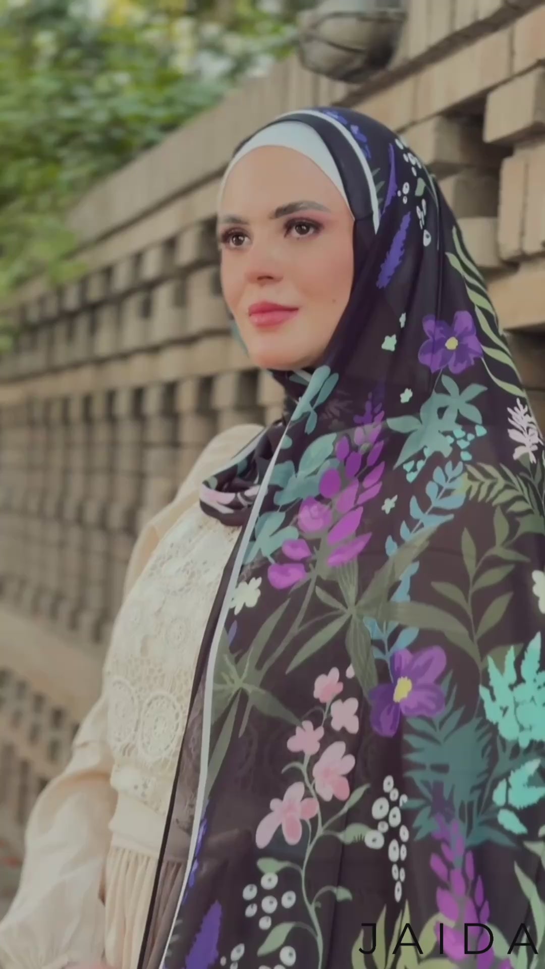 Step into the quiet poetry of dusk. Garden of Whispers is a story told through deep shadows and secret blooms—where soft florals unfold against a midnight canvas. This luxurious chiffon hijab captures the magic of stillness and the strength of beauty in silence.